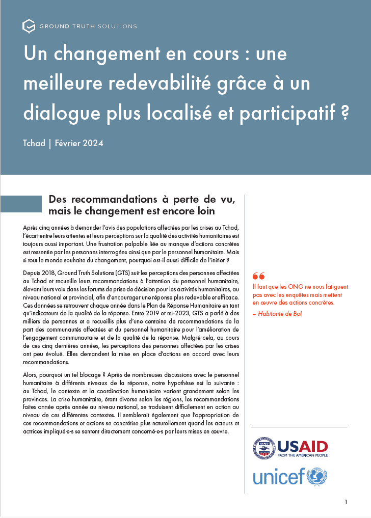 Un changement en cours : une meilleure redevabilité grâce à un dialogue plus localisé et participatif ? Humanitarian reform 29 Feb Written By GTS View Chad GTS