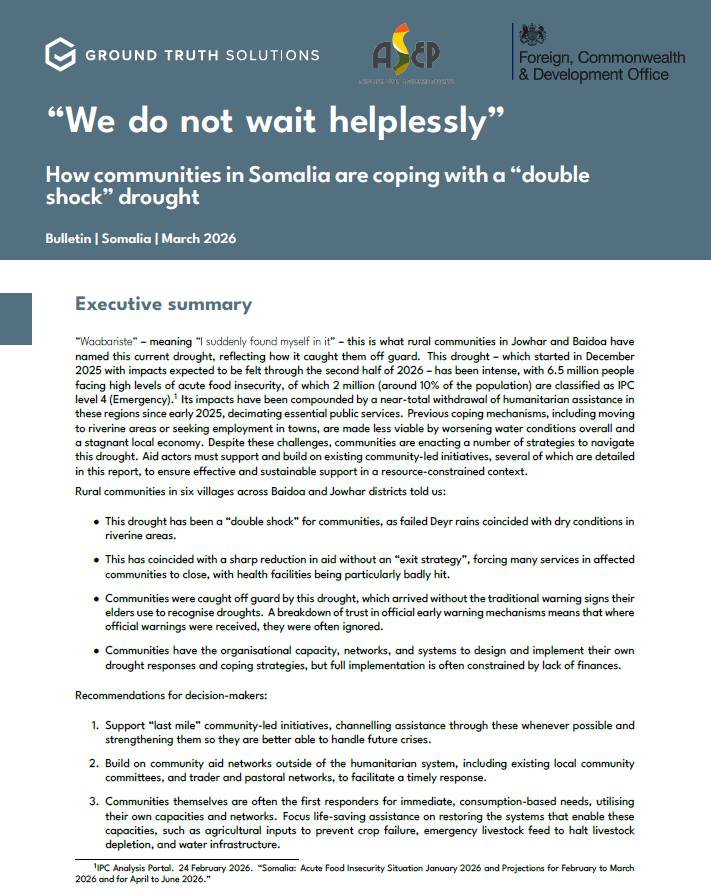 “We do not wait helplessly”: How communities in Somalia are coping with a “double shock” drought Anticipatory actionClimate change adaptationClimate changeHumanitarian reform 27 Mar Written By Pamela Saab View Somalia Pamela Saab